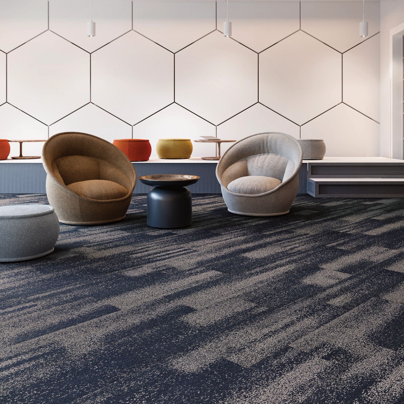 At the heart of the room’s material palette is a bespoke broadloom ...